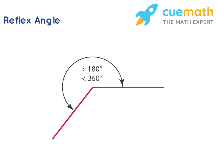 An angle whose measure is greater than 180 degrees but less than 360 degrees is termed a reflex angle. An acute angle and an obtuse angle will always be shown on the other side of the reflex angle. It is less than a full rotation but more than a straight angle.